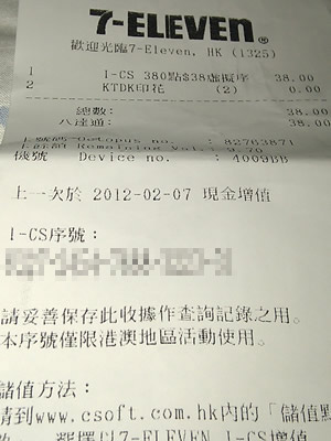 3. 店員將會即場列印一張「i-CScard」單據,上面印有 18 位「點數序號」及「購買收據時間」。